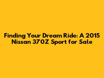 Finding a 2015 Nissan 370Z Sport for sale can be an exciting adventure. With a bit of research and patience, you can find the perfect car that fits your needs and budget. Remember to do your homework, inspect the car thoroughly, and negotiate the price. And most importantly, enjoy the ride!