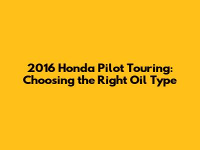 2016 Honda Pilot Touring: Choosing The Right Oil Type