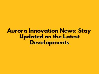 Aurora Innovation: Latest News And Updates