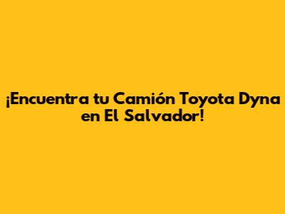 ¿Dónde Encontrar tu Toyota Dyna en El Salvador?