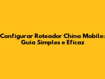 Configurar Roteador China Mobile: Guia Simples E Eficaz