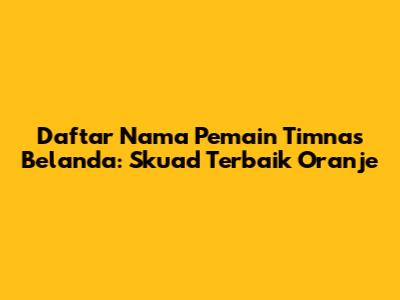 Daftar Nama Pemain Timnas Belanda: Skuad Terbaik Oranje