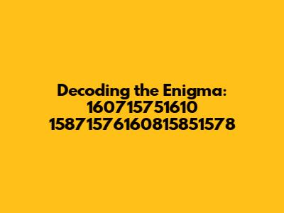 Decoding 160715751610 15871576160815851578: A Comprehensive Guide