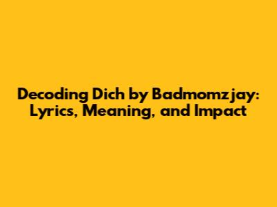 Decoding 'Dich' By Badmomzjay: Lyrics, Meaning, And Impact