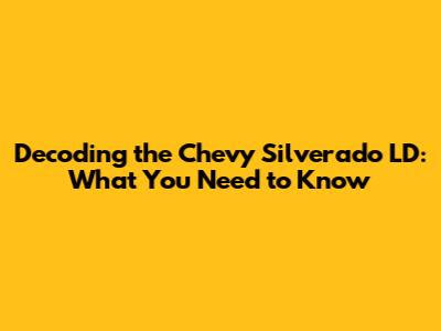 Decoding The Chevy Silverado LD: What You Need To Know
