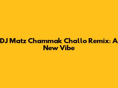 DJ Matz Chammak Challo Remix: A New Vibe