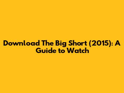 Hey guys! Looking to dive into the world of high finance with a side of dark humor? You're probably searching about how to download The Big Short (2015). This movie, which breaks down the 2008 financial crisis in a way that's both informative and wildly entertaining, is a must-see. But before you go hunting for those download links, let's talk about the best and safest ways to watch it. I'm gonna walk you through everything you need to know, from where you can legally stream it to why this film is still so relevant today.