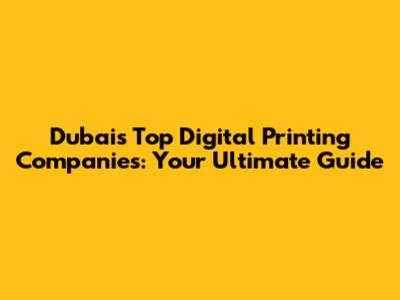 Dubai's Top Digital Printing Companies: Your Ultimate Guide