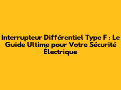 Interrupteur Différentiel Type F : Guide Complet Pour Une Protection Optimale