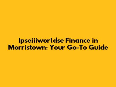 Ipseiiiworldse Finance In Morristown: A Comprehensive Guide