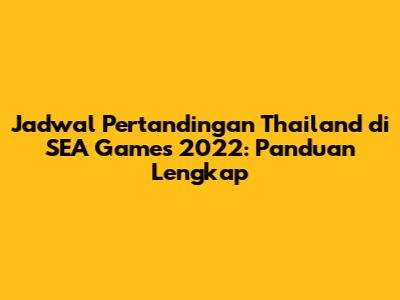SEA Games 2022, yang diadakan di Vietnam, menjadi panggung bagi para atlet dari berbagai negara Asia Tenggara untuk bersaing dalam berbagai cabang olahraga. Bagi para penggemar olahraga, khususnya yang mendukung Thailand, mengetahui jadwal pertandingan merupakan hal yang krusial. Artikel ini akan menyajikan panduan lengkap mengenai jadwal Thailand di SEA Games 2022, termasuk informasi tentang cabang olahraga yang diikuti, tanggal, waktu, dan lawan yang akan dihadapi. Dengan panduan ini, Anda dapat merencanakan waktu untuk menonton dan mendukung tim favorit Anda.