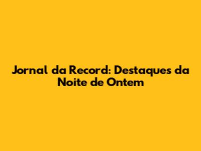 Jornal Da Record: Destaques Da Noite De Ontem
