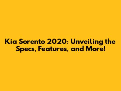 Kia Sorento 2020: Specs, Features, And More!