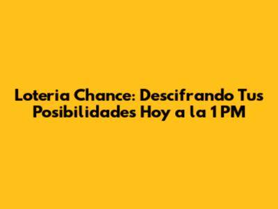 Loteria Chance: ¿Tus Oportunidades Hoy A La 1 PM?