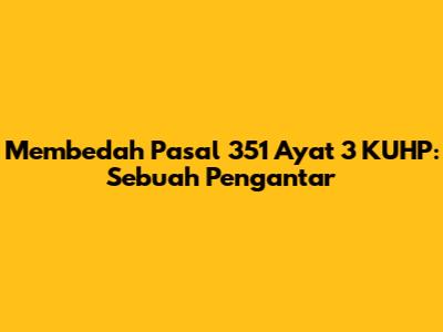Guys, mari kita selami dunia hukum pidana Indonesia, khususnya pasal 351 ayat 3 Kitab Undang-Undang Hukum Pidana (KUHP). Pasal ini seringkali menjadi sorotan dalam kasus-kasus penganiayaan, dan penting bagi kita untuk memahaminya dengan baik. Artikel ini akan membahas secara mendalam mengenai bunyi pasal 351 ayat 3 KUHP, mulai dari pengertiannya, unsur-unsurnya, hingga implikasi hukum yang ditimbulkannya. Kita akan mencoba menyajikan informasi ini dengan bahasa yang mudah dipahami, sehingga tidak hanya bermanfaat bagi para ahli hukum, tetapi juga bagi masyarakat umum yang tertarik untuk mengetahui lebih dalam mengenai hukum pidana di Indonesia. Jadi, mari kita mulai!