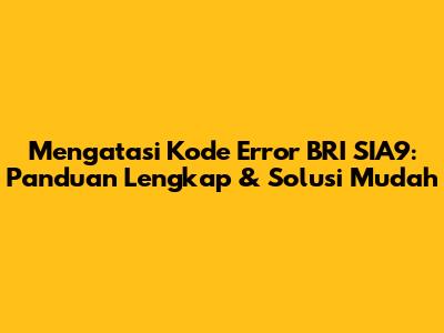 Mengatasi Kode Error BRI SIA9: Panduan Lengkap & Solusi Mudah