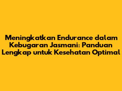 Meningkatkan Endurance Dalam Kebugaran Jasmani