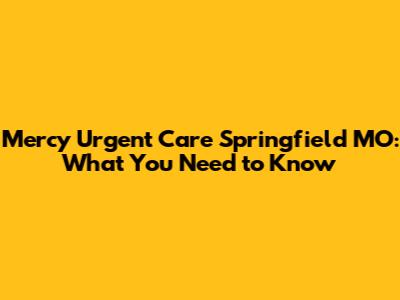 Mercy Urgent Care Springfield MO: What You Need To Know