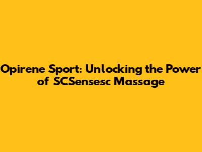 Opirene Sport: Unlocking The Power Of SCSensesc Massage