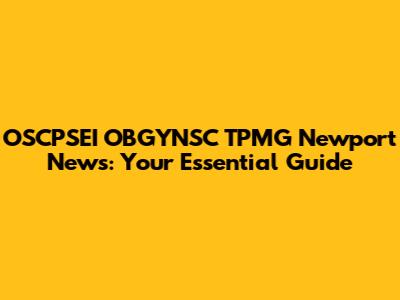 OSCPSEI OBGYNSC TPMG Newport News: What You Need To Know