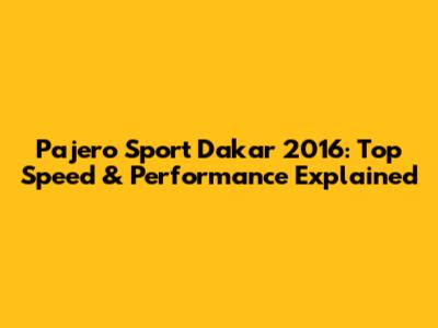 Pajero Sport Dakar 2016: Top Speed & Performance Explained