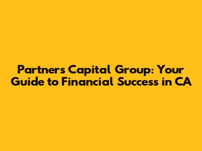 Partners Capital Group: Your Guide To Financial Success In CA