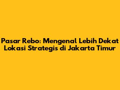 Pasar Rebo adalah nama yang tak asing lagi bagi warga Jakarta. Tapi, guys, banyak juga yang masih bingung, Pasar Rebo termasuk Jakarta mana sih sebenarnya? Nah, dalam artikel ini, kita akan bedah tuntas tentang Pasar Rebo, mulai dari lokasinya yang strategis, sejarahnya yang menarik, hingga berbagai keunikan yang membuatnya menjadi salah satu kawasan penting di Jakarta Timur. Jadi, siap-siap buat jalan-jalan virtual dan kenalan lebih dekat dengan Pasar Rebo!
