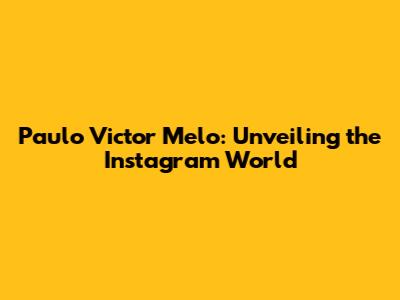 So, who exactly is Paulo Victor Melo? Unfortunately, I don't have enough information to create detailed content about the specific Paulo Victor Melo you're looking for. However, I can still provide a general overview of what people typically do on Instagram.
