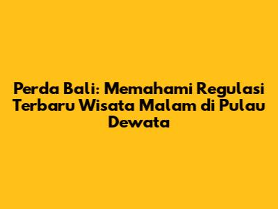 Perda Bali adalah aturan hukum yang dibuat oleh pemerintah daerah Bali. Aturan ini mencakup berbagai aspek kehidupan, termasuk pariwisata. Kalian pasti bertanya-tanya, kenapa sih Perda ini penting untuk wisata malam? Nah, karena Perda ini mengatur berbagai kegiatan yang berkaitan dengan pariwisata, termasuk jam operasional tempat hiburan, jenis kegiatan yang diperbolehkan, dan bagaimana cara menjaga lingkungan. Bayangkan saja, tanpa aturan yang jelas, bisa jadi wisata malam di Bali akan menjadi tidak terkendali, dan tentu saja, hal ini bisa merugikan banyak pihak, mulai dari masyarakat lokal hingga wisatawan itu sendiri.