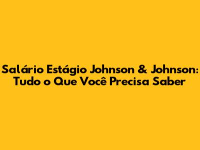 Salário Estágio Johnson & Johnson: Guia Completo E Oportunidades