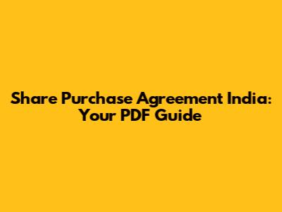 Share Purchase Agreement India: Your PDF Guide