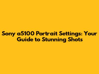 Sony A5100 Portrait Settings: Your Guide To Stunning Shots
