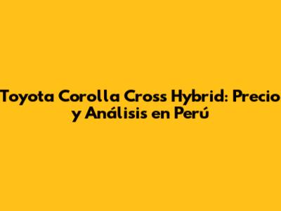 Corolla Cross Hybrid Precio Perú: Understanding the Cost