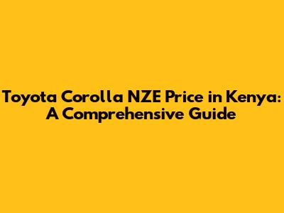 Toyota Corolla NZE Price In Kenya: A Comprehensive Guide