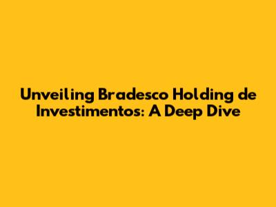 Unveiling Bradesco Holding De Investimentos: A Deep Dive