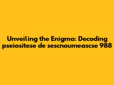 Unveiling The Enigma: Decoding 'pseiositese De Sescnoumeascse 988'