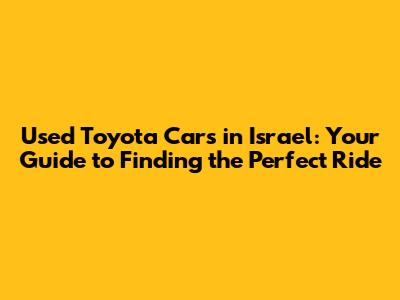 Used Toyota Cars In Israel: Your Guide To Finding The Perfect Ride