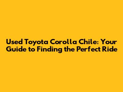 Used Toyota Corolla Chile: Your Guide To Finding The Perfect Ride