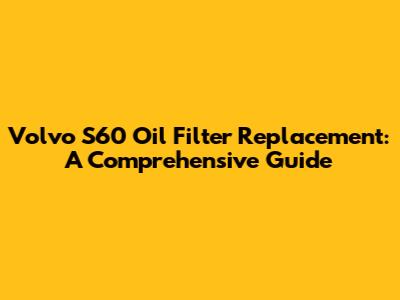 Volvo S60 Oil Filter Replacement: A Step-by-Step Guide